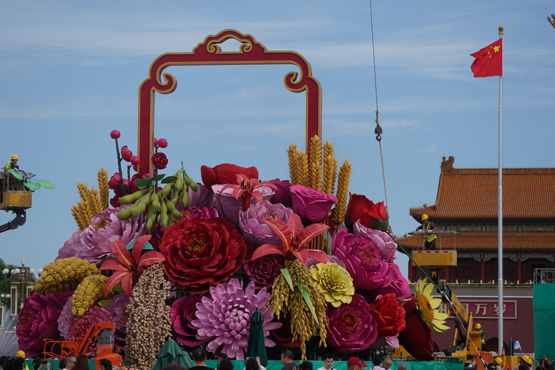 2023年9月19日,天安门广场中心,“祝福祖国”国庆大花篮已初具雏形,迎接国庆节的到来!