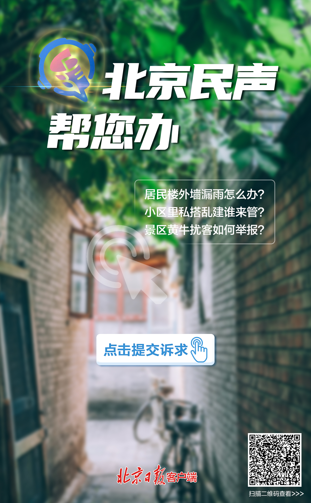 “北京民声帮您办”依托北京市“接诉即办”工作机制,北京日报协同处置网民留言线索,及时回应市民关切。市民可以扫描下方的二维码,您的留言将通过记者的采访报道刊发在媒体上,或者直接提交到北京12345热线系统,转交有关部门快捷办理。