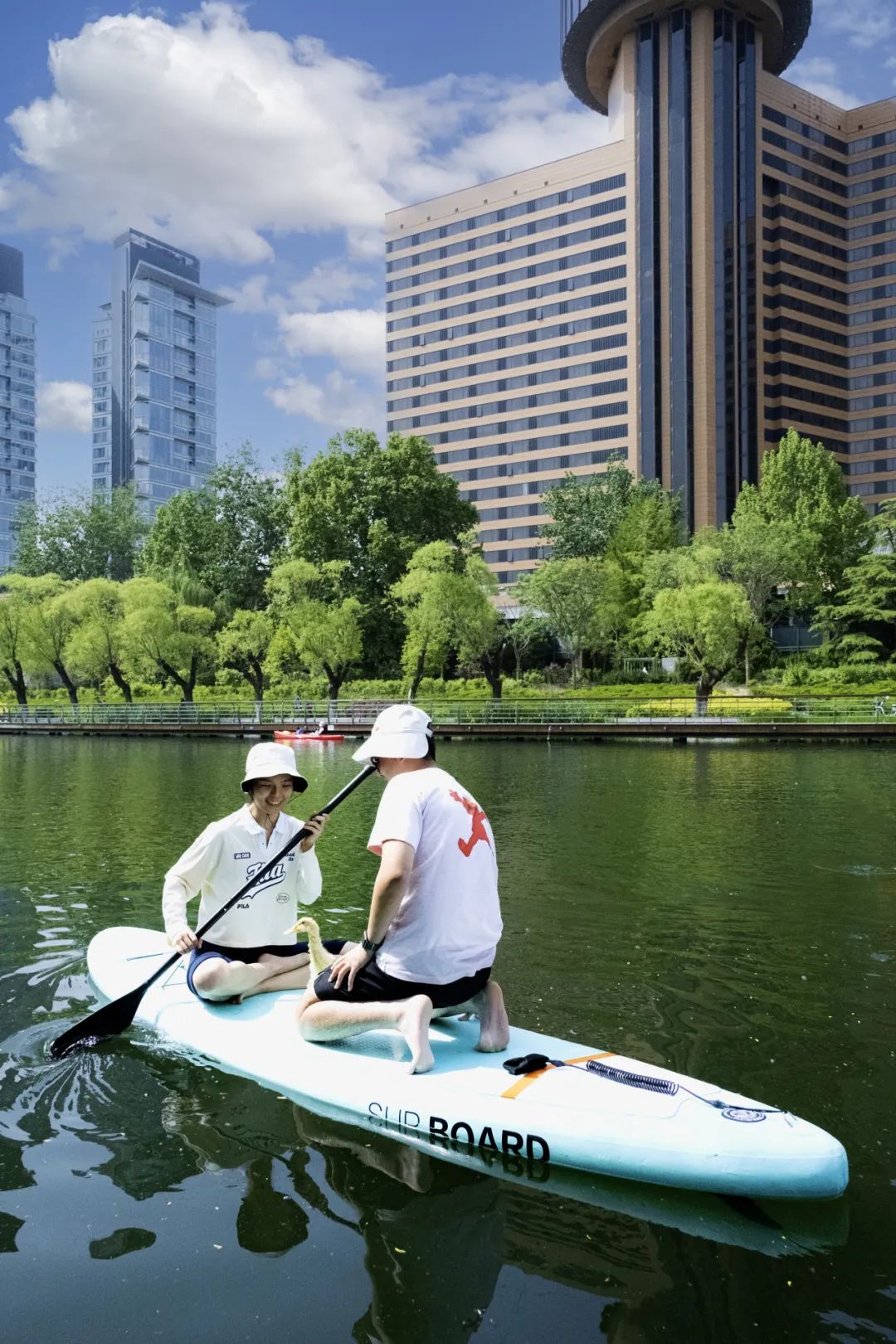想要亲水,亮马河还有丰富多彩的水上娱乐活动。朝阳扩大河湖开放共享,在亮马河部分水域开设桨板、皮划艇、赛艇等水上运动试点。作为全市七处试点之一,亮马河水上项目自开设至今,约有2.9万人次来体验皮划艇、桨板等活动。