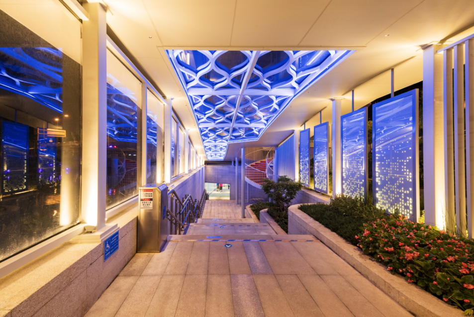 当大家慢行滨水绿道的同时,还可以欣赏亮马河24桥。桥下空间也利用起来了,三环路燕莎桥下的通廊设计科技感十足,墙壁上贴有反映亮马河变迁和朝阳治水的相关图片,让市民在漫步中了解朝阳水系。