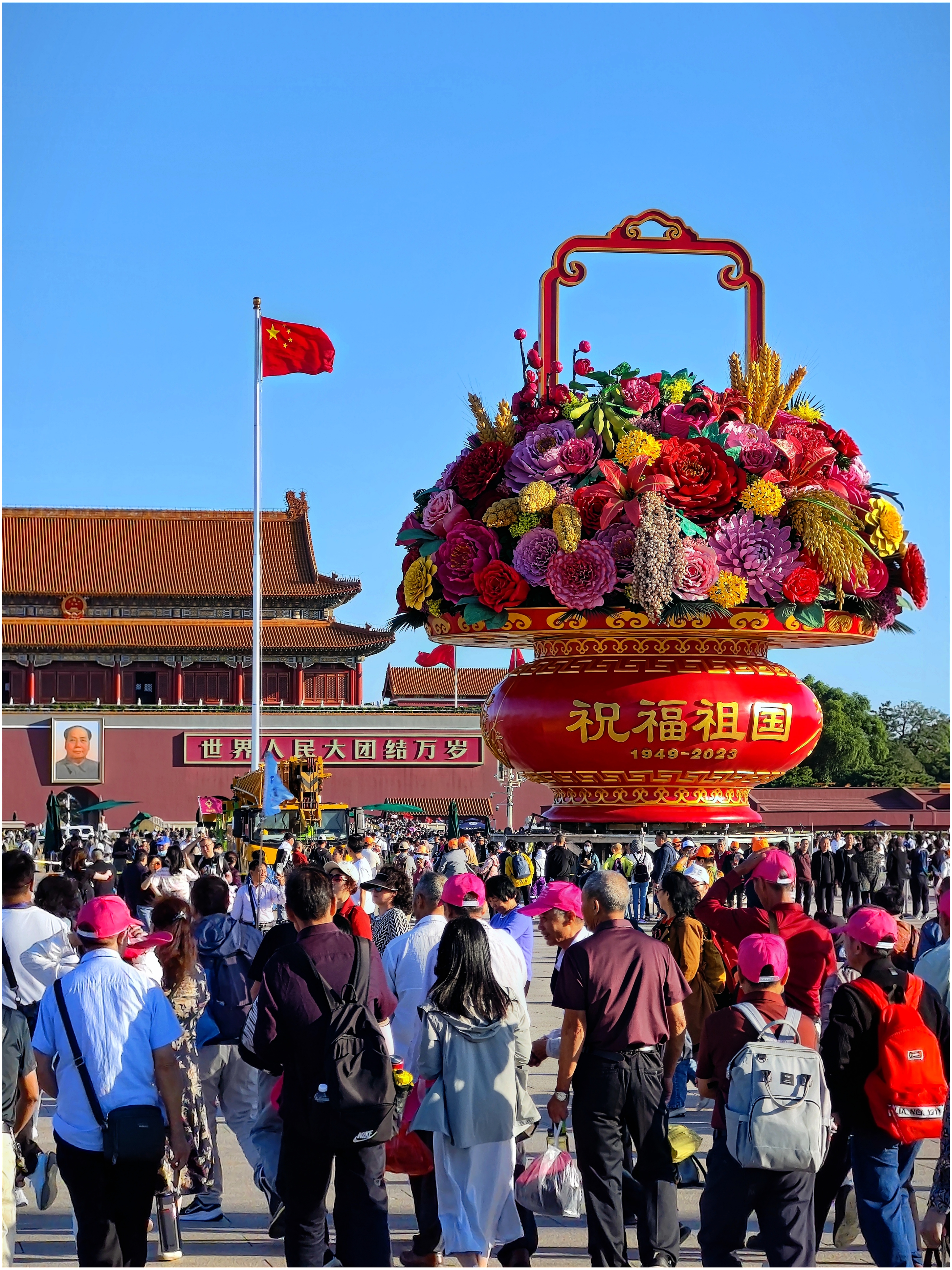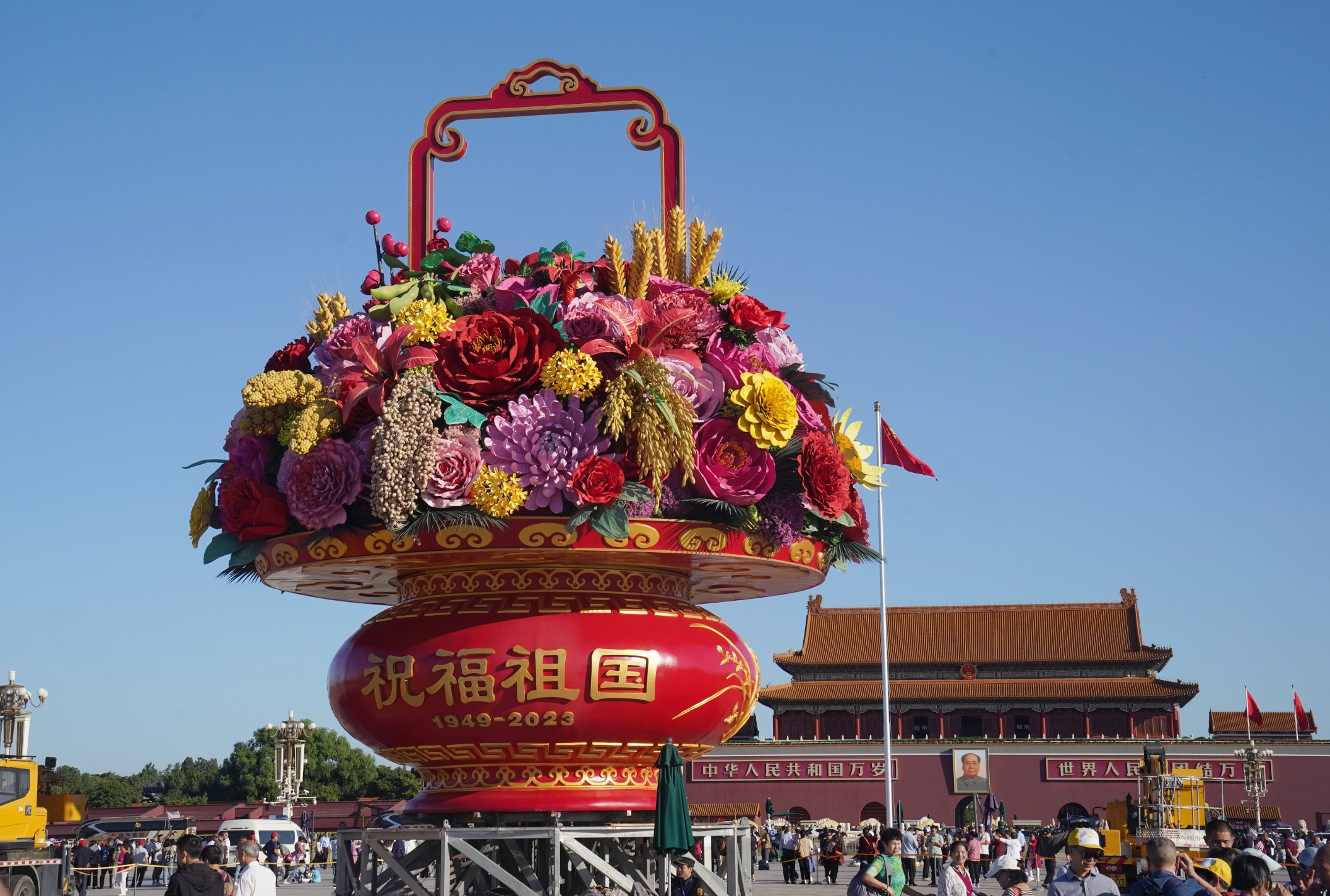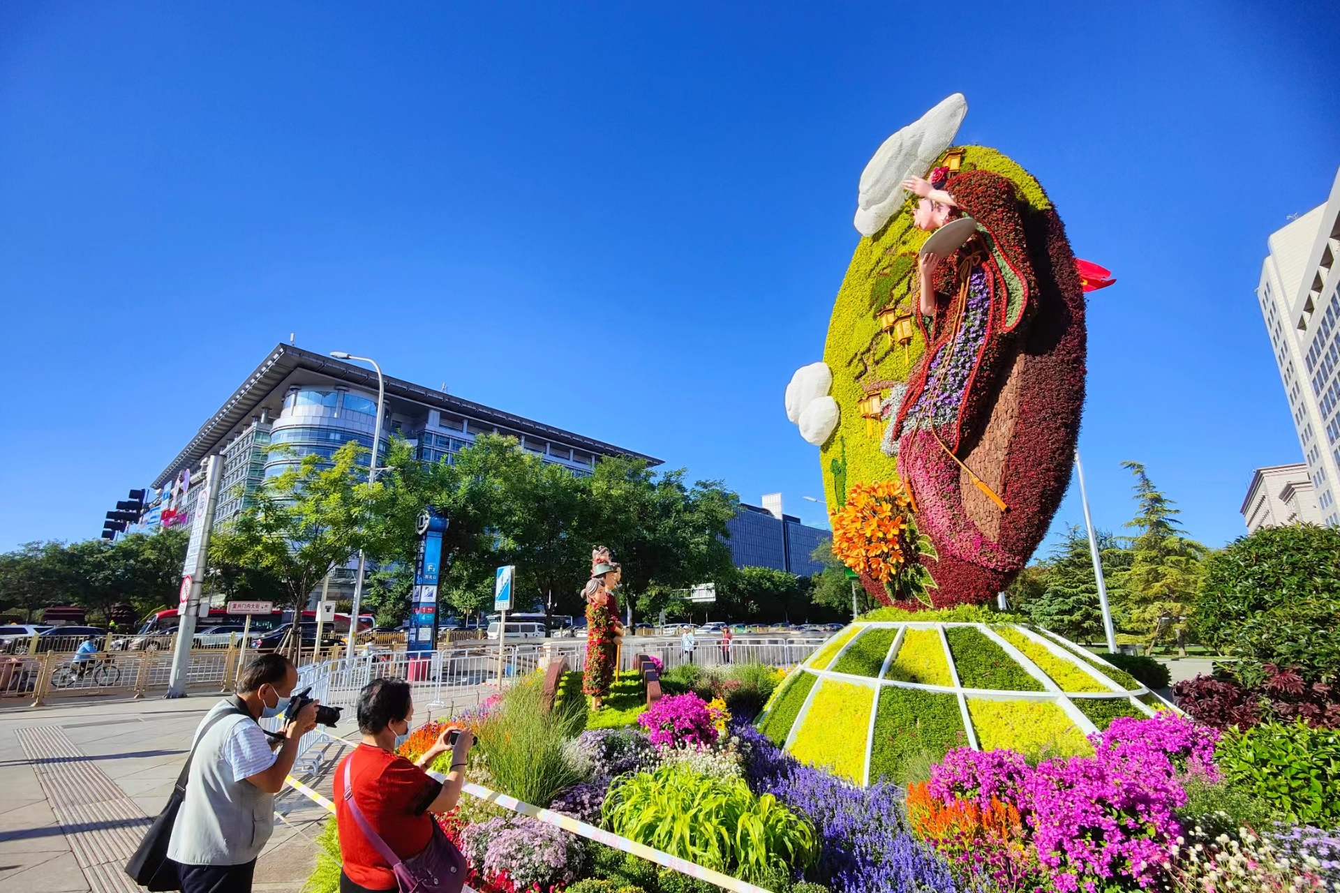 “祝福祖国”巨型花篮整体亮相!配套花坛初现真容