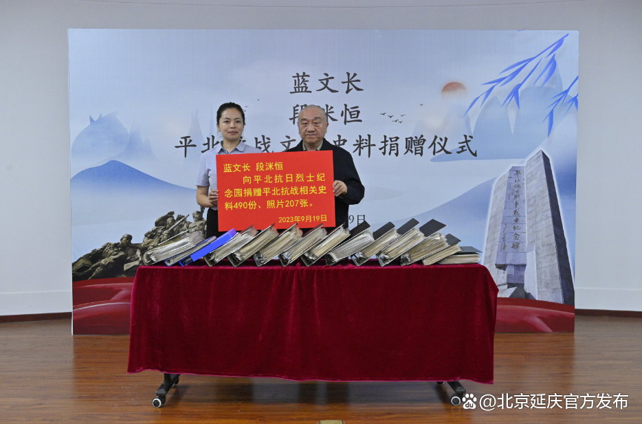 9月19日,“忆平北峥嵘岁月 看海陀今朝盛景”平海儿女联谊会暨文献史料捐赠仪式在平北抗日烈士纪念园举行。曾任平北军分区政委兼平北地委书记的段苏权将军的儿子段洣恒先生将家中珍藏的关于平北抗战的490份史料、207张照片以及300余封信件,全部捐赠给平北抗日烈士纪念园。
