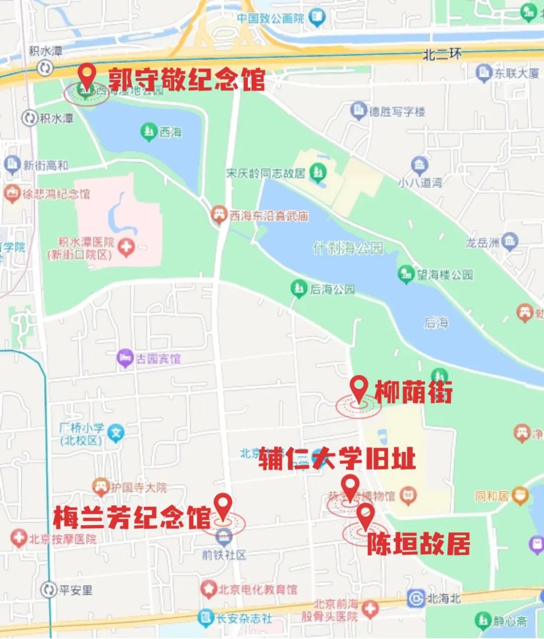 梅兰芳纪念馆——辅仁大学旧址——陈垣故居——柳荫街——北京郭守敬纪念馆