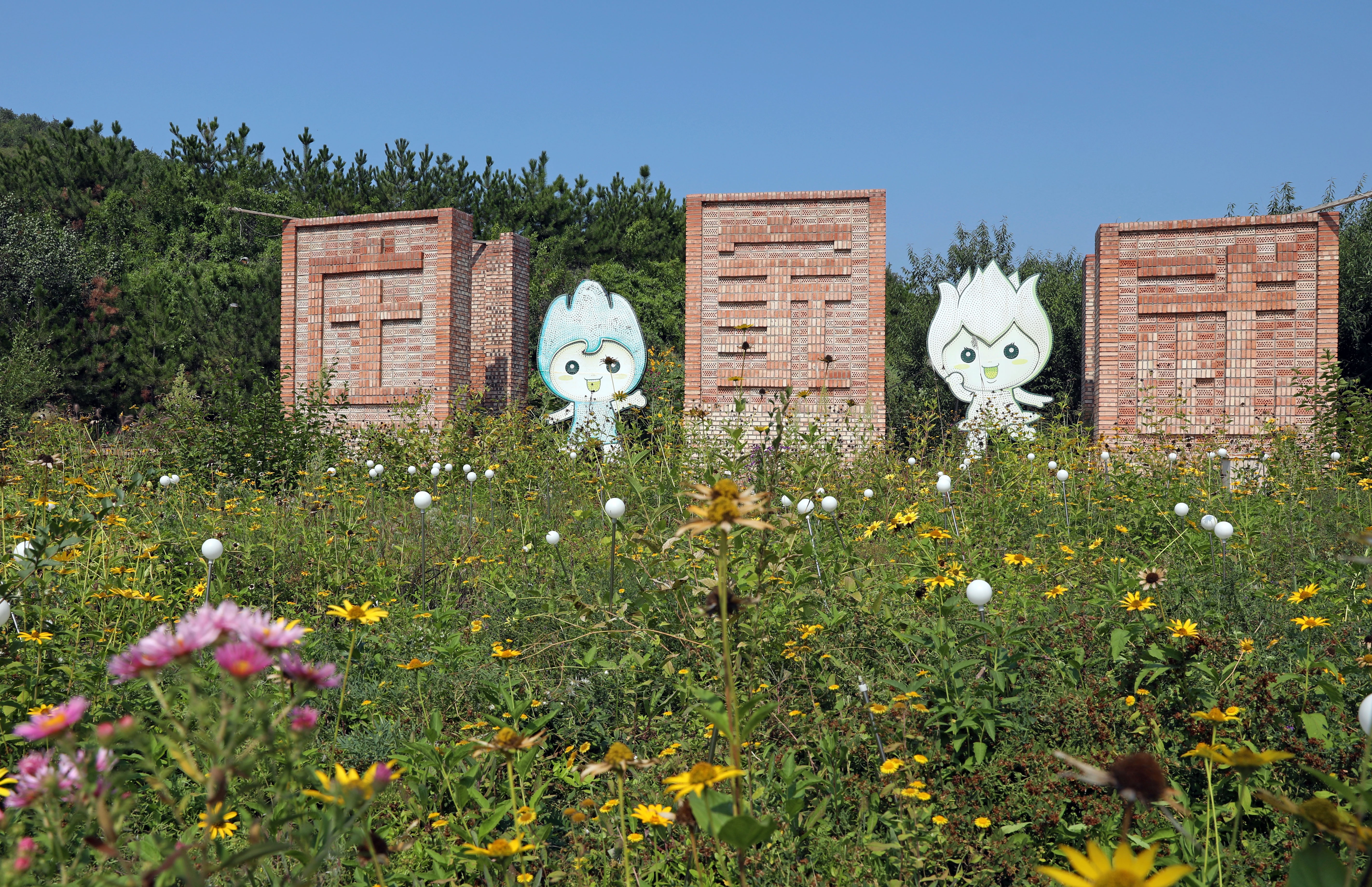 初入武家庄村,空气清新、气温适宜,在明净的蓝天下,红砖雕砌的“武家庄”三个大字格外醒目。当夜间灯光亮起,这三个大字更加耀眼夺目。与大字对称,在道路另一边,一处造型独特的砖墙相映成趣。向导介绍,这处砖墙是冰山造型,寓意着古代文明和现代艺术相遇,碰撞出艺术的火花。