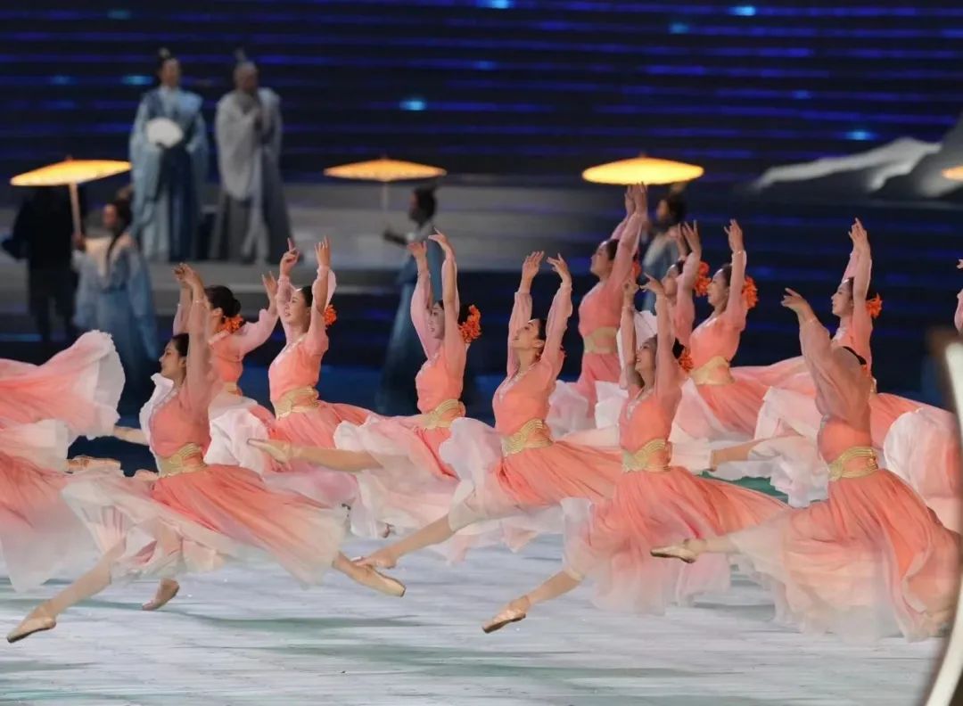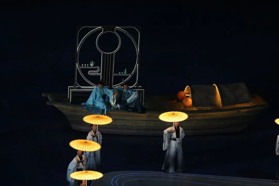 文艺表演环节,水墨入诗画、“山水留白”……无数文人墨客画笔下与画卷上的美景呈现在眼前,中式美学再次惊艳。