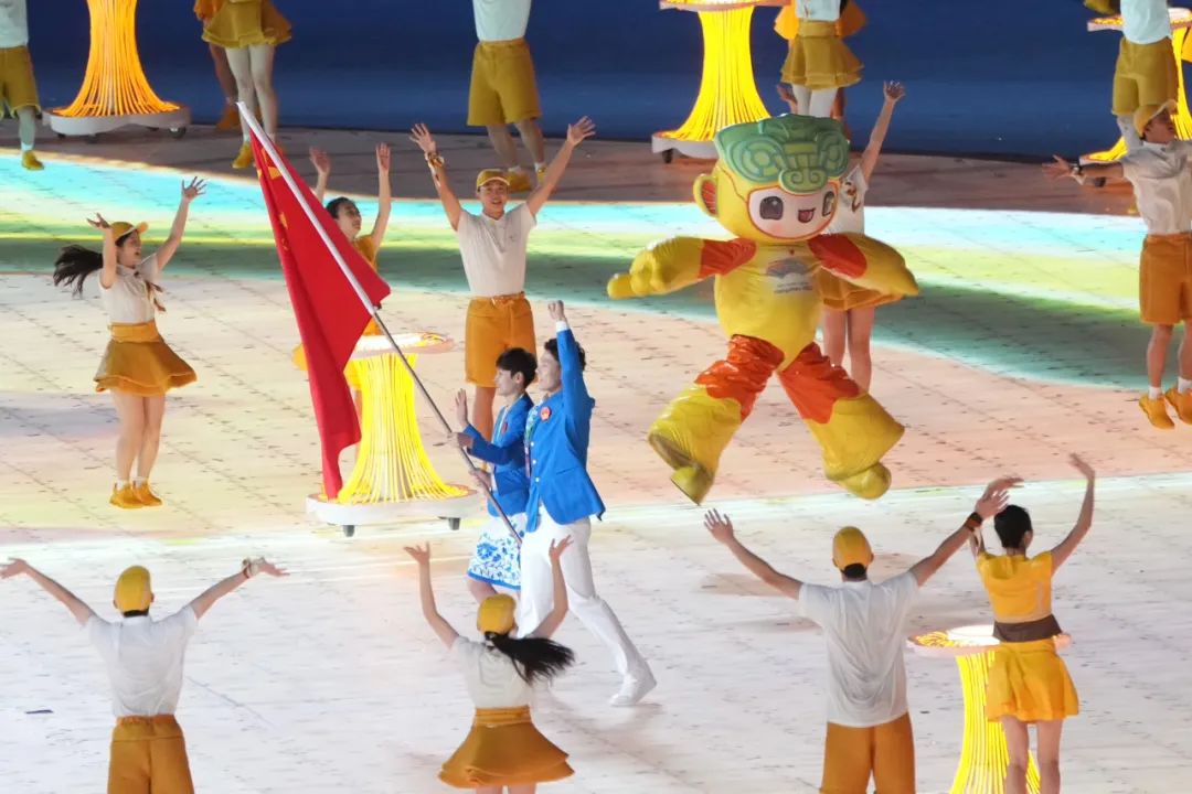 游泳运动员覃海洋、篮球运动员杨力维担任旗手。