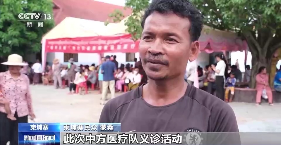柬埔寨民众 蒙桑:此次中方医疗队义诊活动为我们柬埔寨百姓带来了便捷优质的医疗服务,中方专家们都很认真耐心,不仅解决了我的病痛,还送给我们暖心的药包,非常感谢中国人民解放军医疗队。