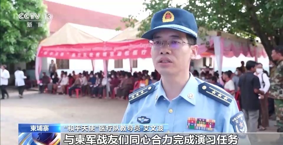 中国人民解放军“和平天使”医疗队教导员 艾文波:“和平天使”医疗队不仅在演训场与柬军战友们同心合力完成演习任务,而且在金边、暹粒两地派出31个学科70余名专家,开展义诊、学术讲座、健康宣教等活动,组织高级专家开展多学科联合会诊和手术,用实际行动浇灌中柬友谊之花。