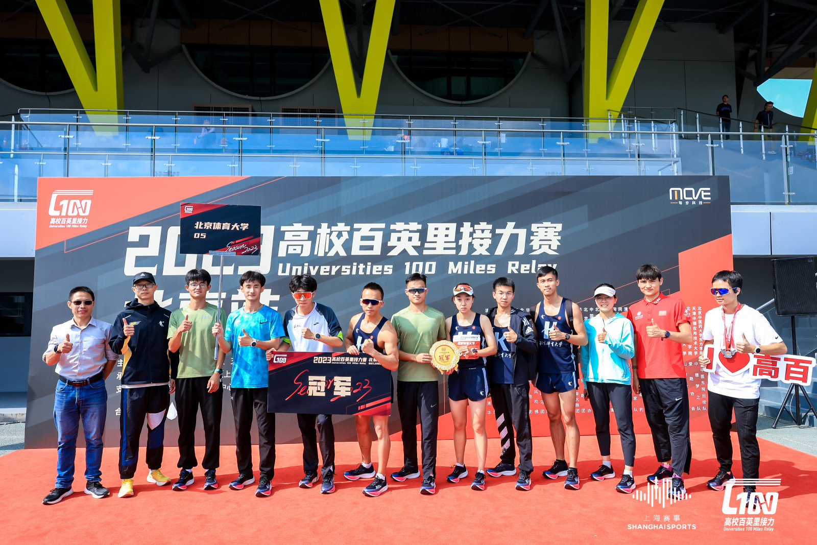 周六,2023“高校百英里”(以下简称“高百”)接力赛分站赛北京站在北京回龙观体育公园乐动力体育中心激情上演。这项覆盖全国近千所高校的赛事,在时隔三年后,线下赛事全面回归。北京体育大学北体跑协以2小时15分58秒的成绩率先完成40公里赛程,勇夺北京站甲组冠军。清华大学和北京大学位列2、3位。北京理工大学、北京航空航天大学、天津大学跻身前六。北京站的晋级队伍将于12月16日与另外6个分站赛的优胜队伍一起在上海争夺2023高校百英里的总冠军。