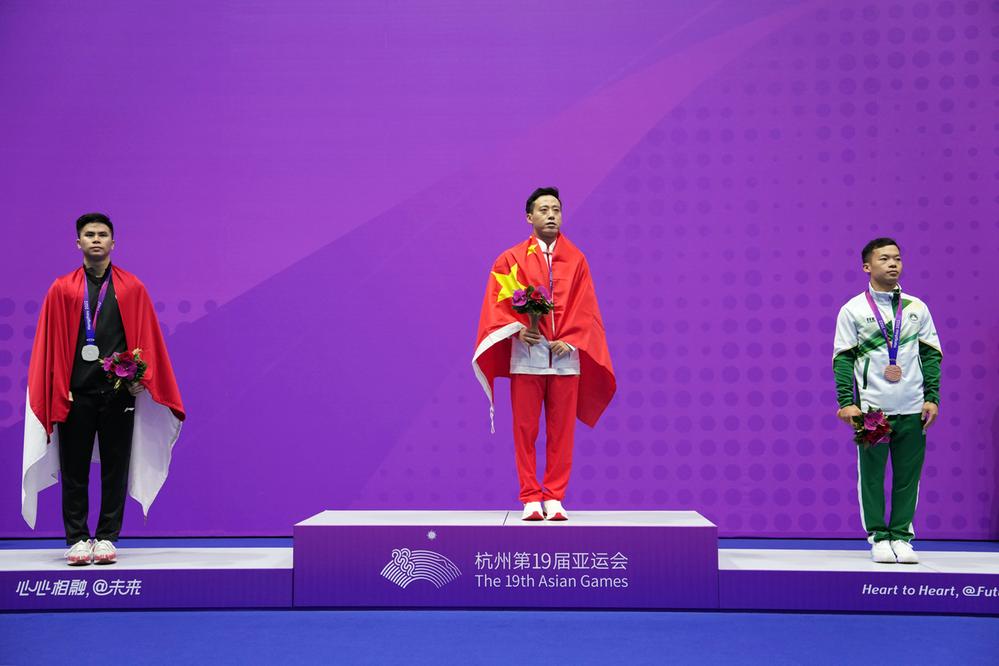 9月24日上午,杭州亚运会男子长拳项目结束,中国名将孙培原以9.840的得分排名第一,夺得杭州亚运会中国队武术项目第一金,并获个人亚运会三连冠。印度尼西亚选手埃德加·泽维尔获得银牌,中国澳门选手宋子君获铜牌。