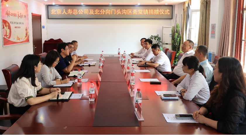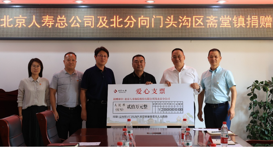 2023年9月18日,北京人寿保险股份有限公司党委书记、董事长郭光磊,副总经理、北京分公司总经理陶瑞飞一行前往北京市门头沟区进行灾后重建慈善捐赠,人力资源部(党群工作部)总经理郝冉,工会副主席、人力资源部(党群工作部)助理总经理汤丽晶,以及北京分公司总经理室成员等随同前往。门头沟区党组成员、副区长朱凯,斋堂镇党委书记晋卫华,门头沟区慈善协会秘书长刘军勇,斋堂镇组织委员李笑晨,党群工作办公室副主任杨琨等领导出席捐赠仪式。