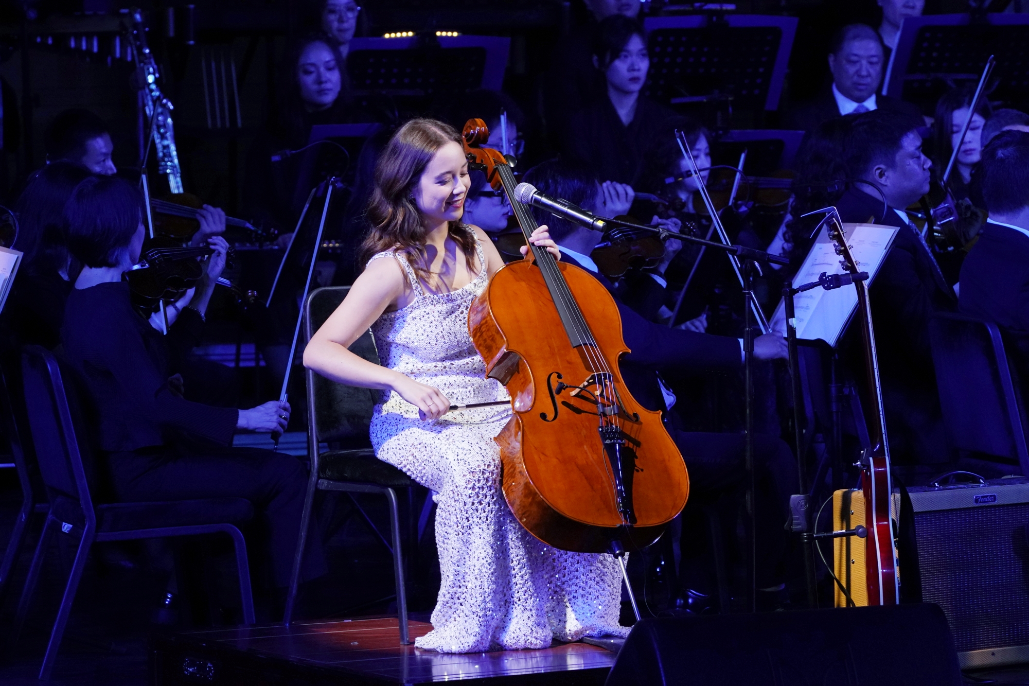 这是一个被台上台下的年轻人尽兴点燃的夜晚,林冰为观众们带来了所有专辑的歌曲精选。她在电吉他、大提琴、钢琴间转换自如,而当厚重丰富的交响乐潮水般将她包围时,林冰觉得,外公其实从未远去。她9岁那年,林耀基离世,但他留给林冰的记忆永远鲜活而闪耀。林耀基一生桃李满天下,影响深远,中国爱乐乐团演奏家每次挥动琴弓,“我都能感觉到外公传授下来的技艺在流淌。这次登台,我也是在为他歌唱。”