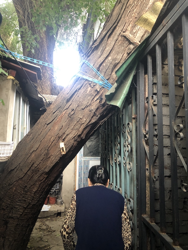 净土胡同5号院里,居民进出需要从树下钻过去。