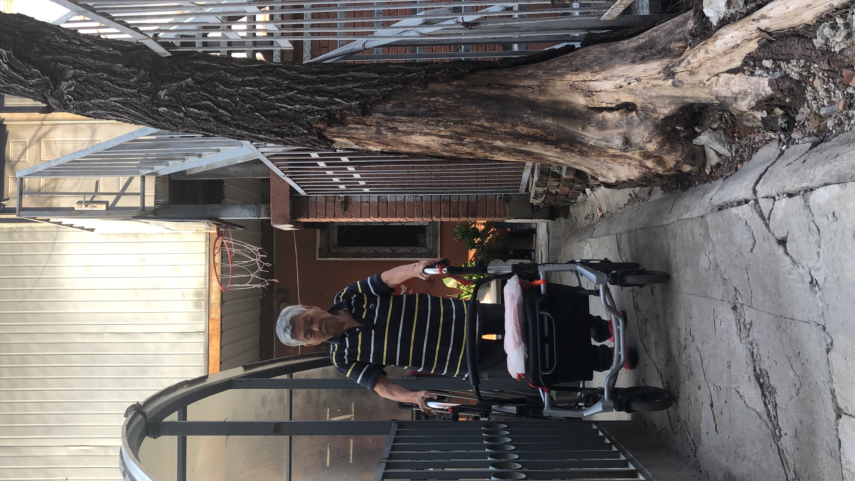 居民刘女士已经78岁了,就住在院内的平房区。老人腿脚不灵便,出门得推一辆小轮椅车,行走的速度慢,拐弯更费劲,路上但凡有坑有坎儿,行进就非常困难。家门前的老榆树,成了老人出行的一块心病。