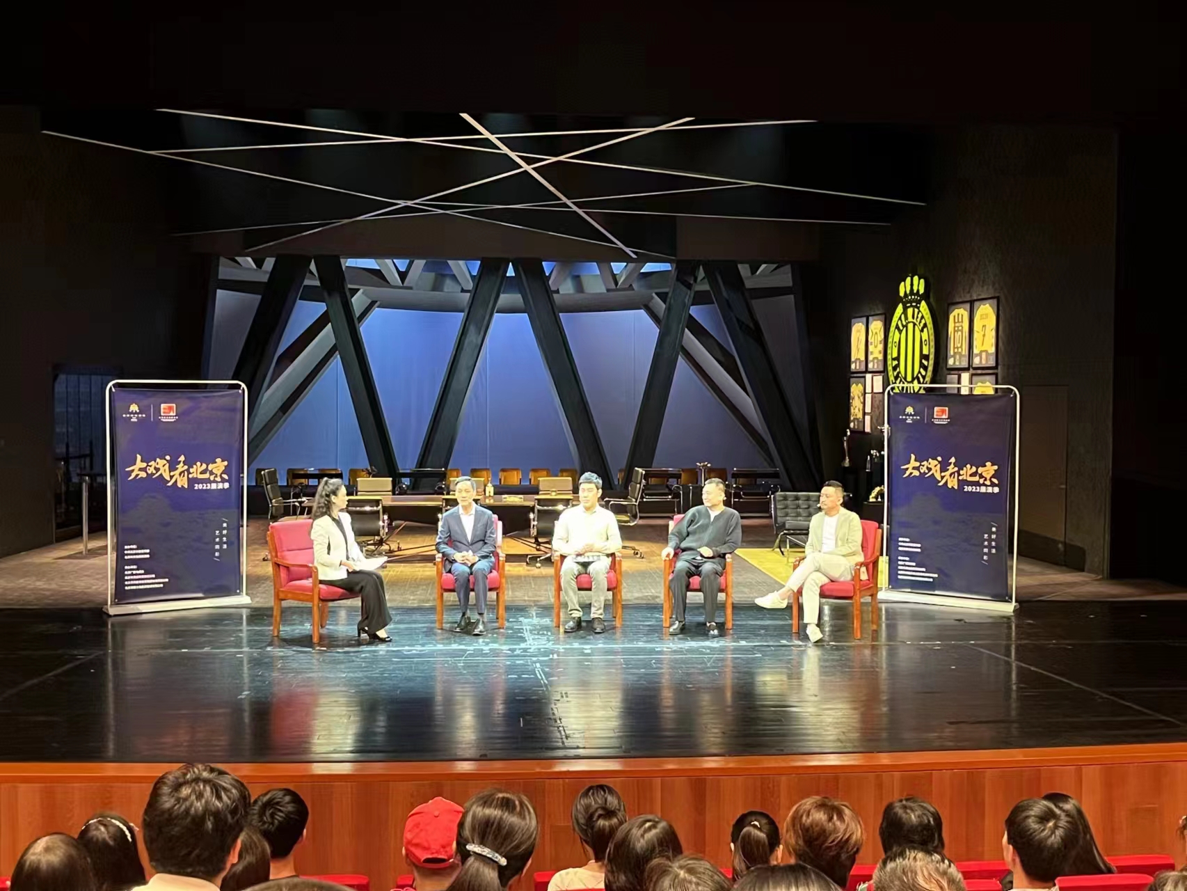 9月26日,“大戏看北京”2023展演季的其中一场“戏剧沙龙”活动在北京人民艺术剧院曹禺剧场举行。北京人艺院长冯远征、演员王刚和刘辉、《文艺报》新闻部主任徐健,与近300位“人艺之友”戏剧爱好者和中央戏剧学院学生组成的戏剧观摩团成员欢聚一堂,围绕着“戏剧与城市”的主题展开了热烈轻松的交流互动。