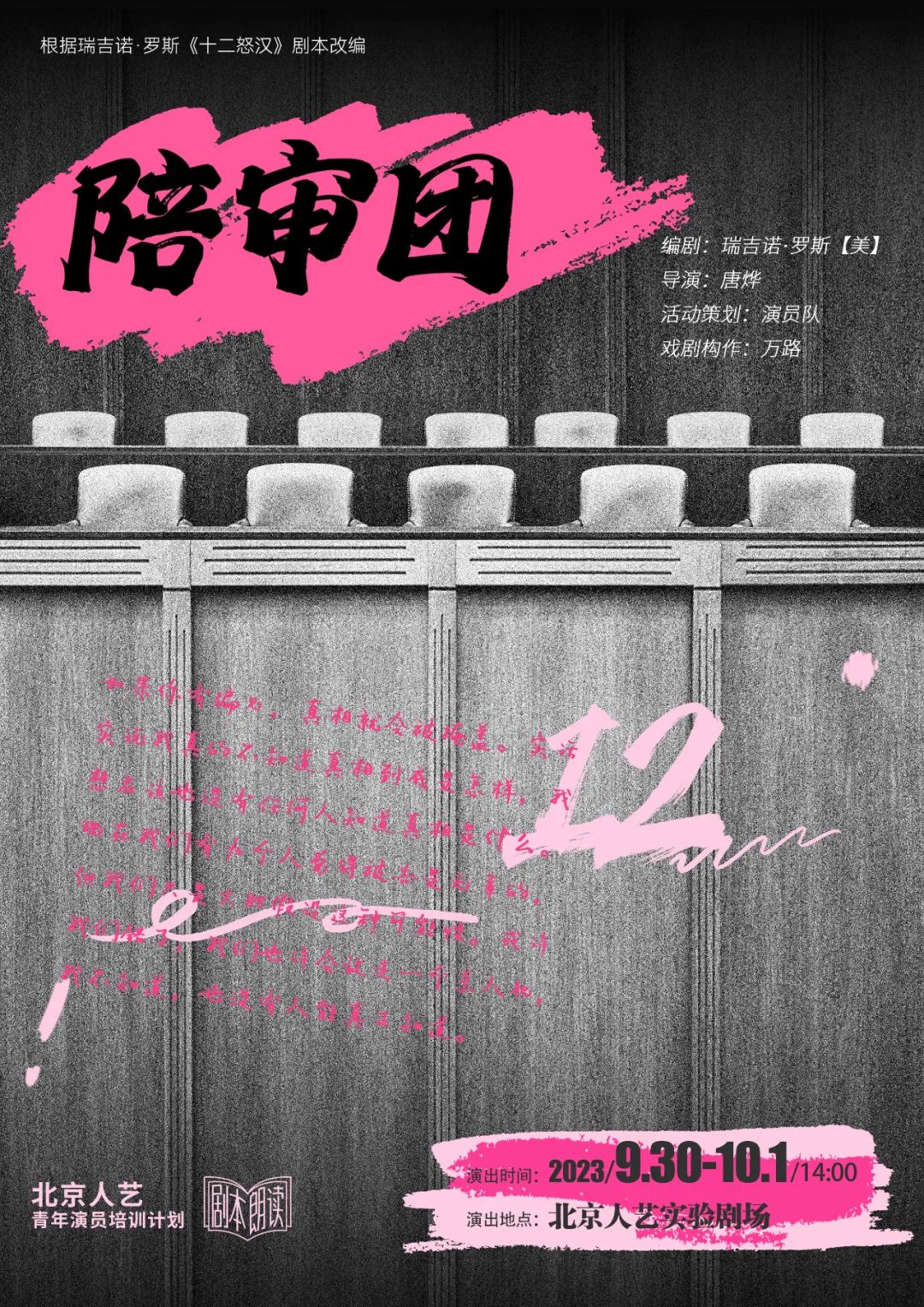 9月30日、10月1日14时,北京人艺新一期青年演员培训计划将在北京人艺实验剧场举行“全女班”演绎改编《十二怒汉》的剧本朗读《陪审团》。本次活动于9月27日上午9时开放预约,观众可以在北京人艺官方公众号报名参加,免费观摩本次活动。人数有限,报满即止。