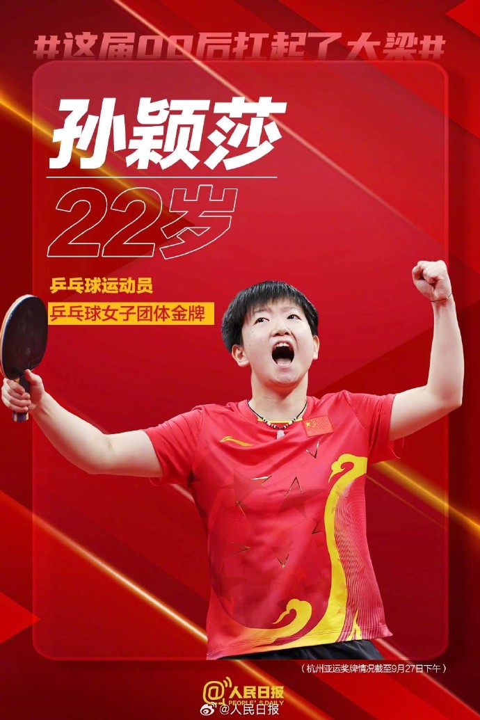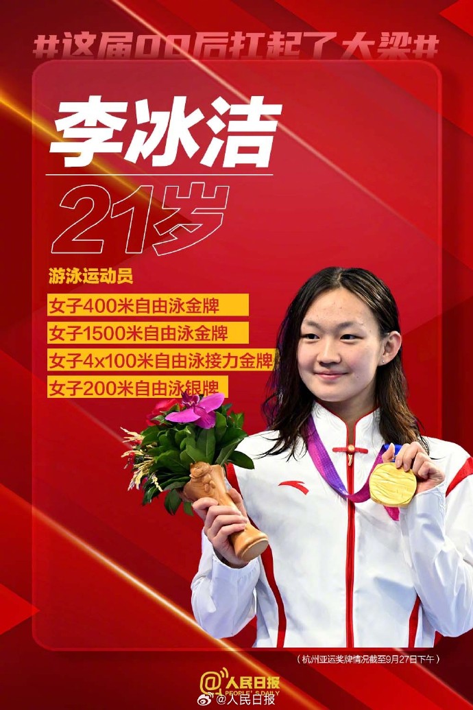 杭州亚运会上,这届00后扛起了大梁。他们纵横赛场,阳光自信;他们超越自我,圈粉无数。自古英雄出少年,每一种奋斗姿态都很动人。在大赛中成长,在历练中成熟,青春必能闪耀更多光彩。