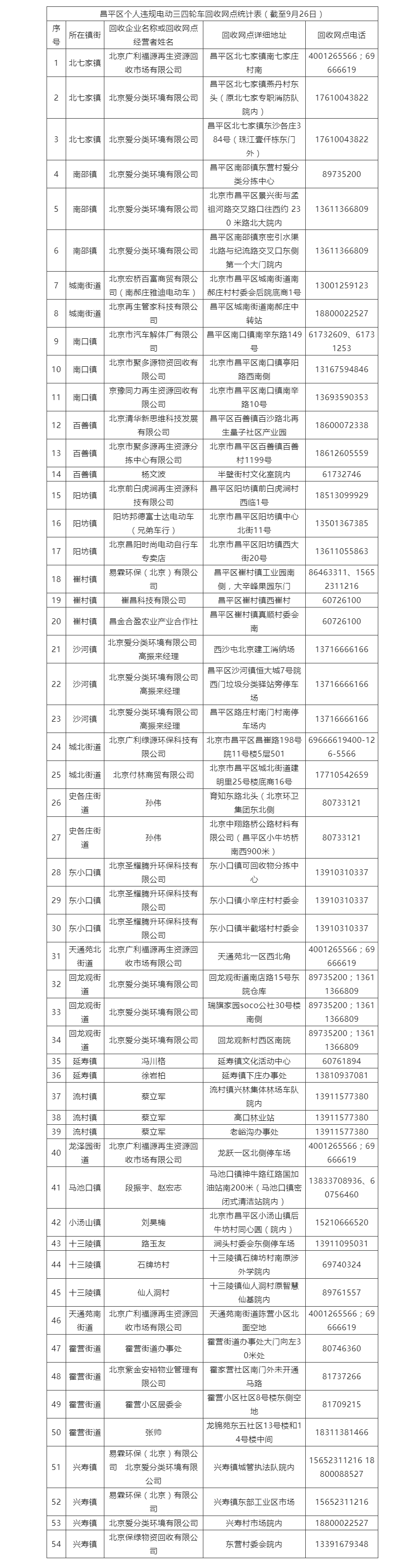 截至目前,昌平区共设立线下拆解回收网点25处,为居民提供违规电动三四轮车回收服务。