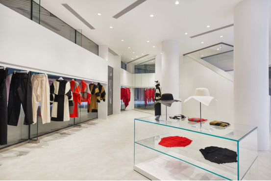 北京三里屯太古里集合店一层为ISSEY MIYAKE品牌,二层汇集PLEATS PLEASE ISSEY MIYAKE 、me ISSEY MIYAKE 以及BAO BAO ISSEY MIYAKE 三个独立品牌。白色立柱与透明岛隔断出清晰的品牌分区,营造流畅购物体验,斑斓褶皱和精巧三角片在这一纯白空间呈现出灵动质感。
