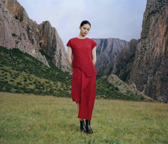 此间集合店开幕为三宅一生爱好者带来ISSEY MIYAKE「CURVED PLEATS PB」系列限定色--辰砂红。