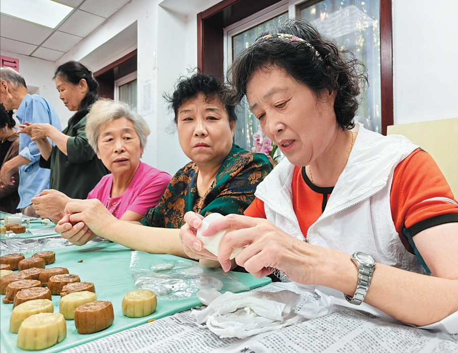 东花市街道北里西区举办“巧手做月饼 共享邻里情”活动。