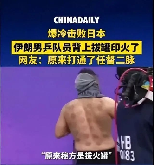 杭州亚运会乒乓球男子团体赛上,伊朗队在四分之一决赛中爆冷淘汰传统强队日本队,时隔65年再摘铜牌,成为最大黑马。伊朗选手背上遍布的拔罐印也吸引网友注意,网友调侃:“原来是打通了任督二脉!”