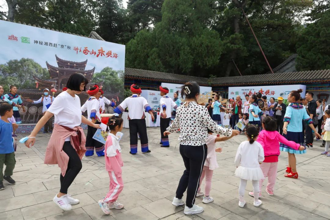 今年中秋国庆“双节”期间,香山公园与湖南省永顺县合作开展湘西主题文化周活动,推出土家族非遗展示和特色歌舞表演。在致远斋院内,每天四个场次,来自土家族能歌善舞的人们带领着市民游客舞动起来,表达着对美好生活的感恩和祝福。