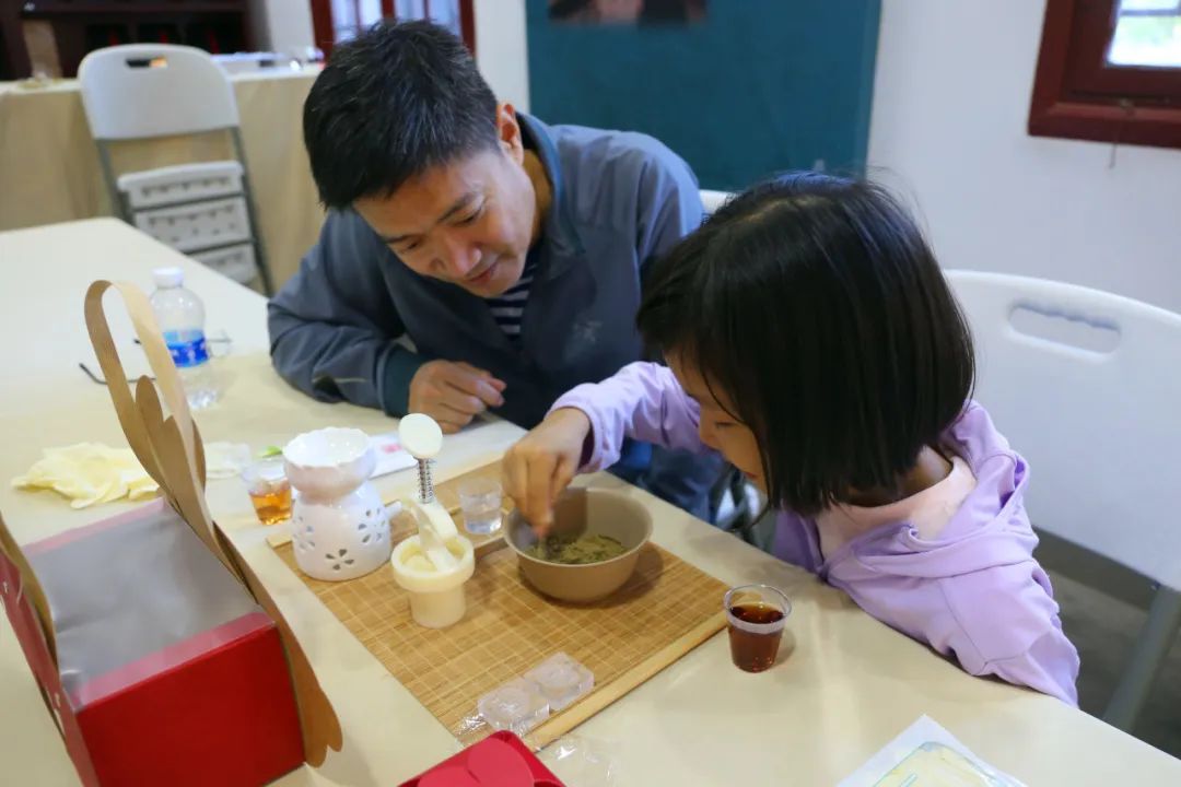 中秋佳节,想必您一定品尝了传统美食——月饼,不过,我们今天准备的“月饼”,可是不能吃的“月饼”,那么它又能做什么呢?今天,在见心斋正凝堂内,公园特约的香文化老师为参与活动的游客们讲解中国传统香学文化历史渊源,带领游客将香料和成香泥、制成香饼,而后点亮暖香炉,进行隔火熏香。通过观、触、闻、品,近距离与香学老师交流香养常识、品触古今香氛,切身体会中国传统用香的奥妙。