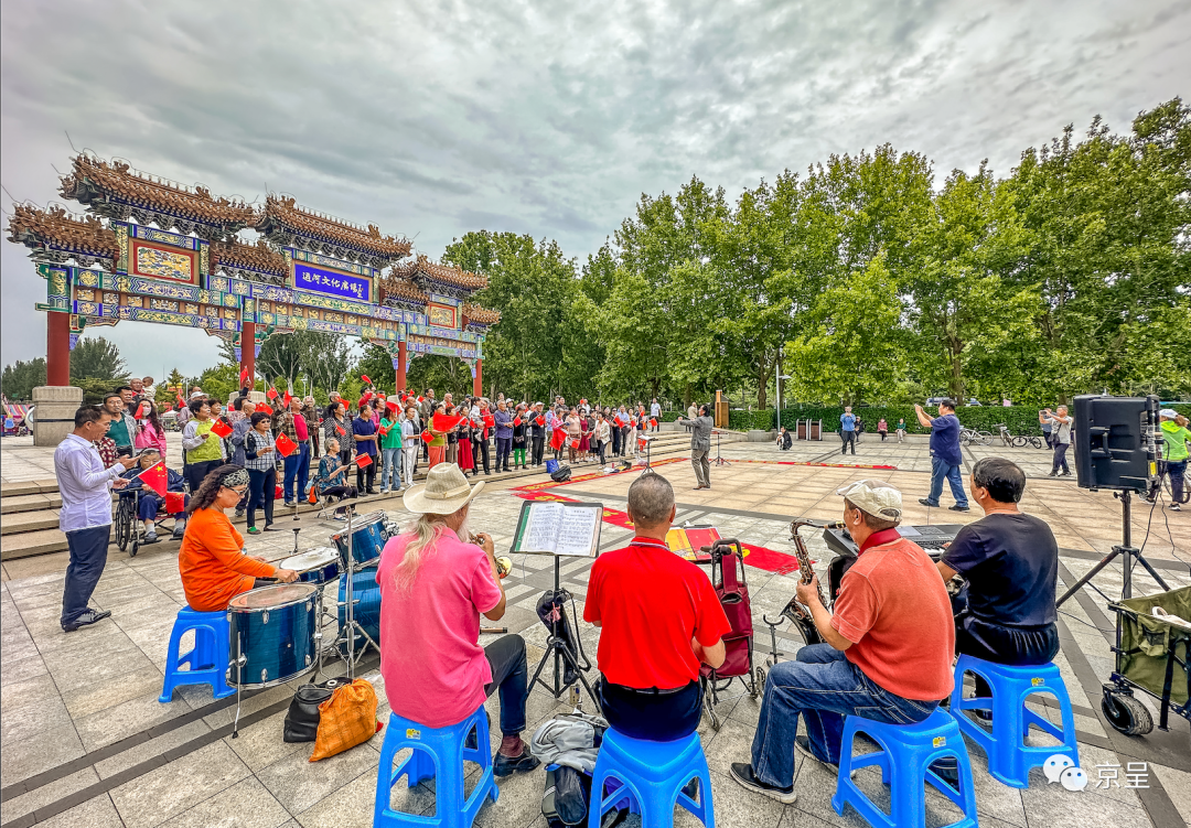 歌唱祖国。北京通州运河文化广场,一支老年合唱团以歌唱红歌的方式喜迎中秋、国庆“双节”到来。 王丹枫 摄