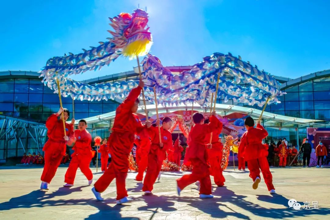 顺义鲜花港为庆祝双节举办舞龙表演,阳光下飞龙盘桓,气势非凡。 张淑贵 摄