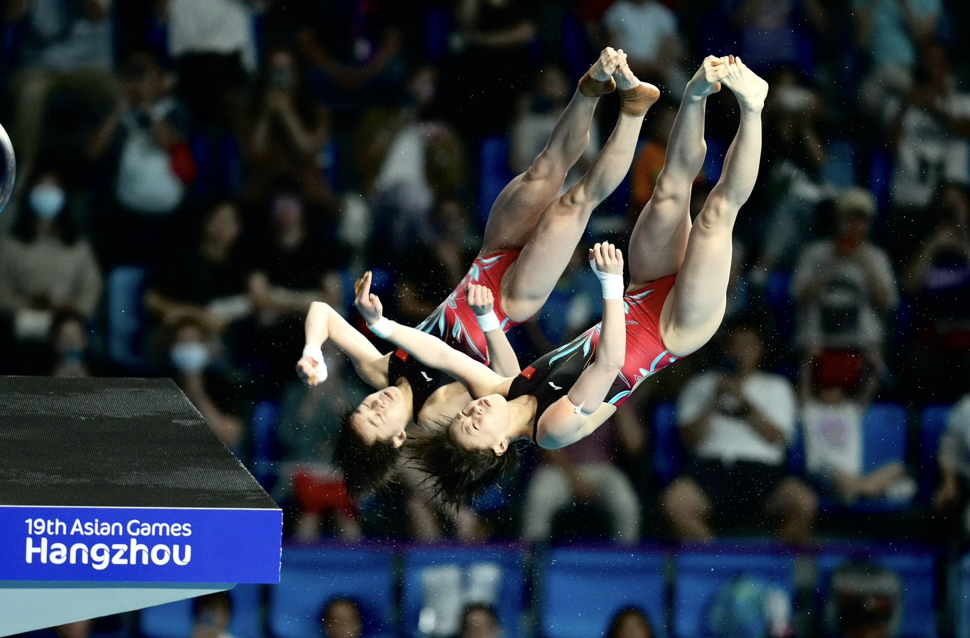 9月30日,中国跳水梦之队亮相杭州亚运会赛场。在当天下午首先上演的女子双人10米跳台比赛中,中国队的王牌组合全红婵/陈芋汐登场亮相。两人不负众望,以总分375.3分的巨大优势拿下金牌,打响了跳水项目的开门红。