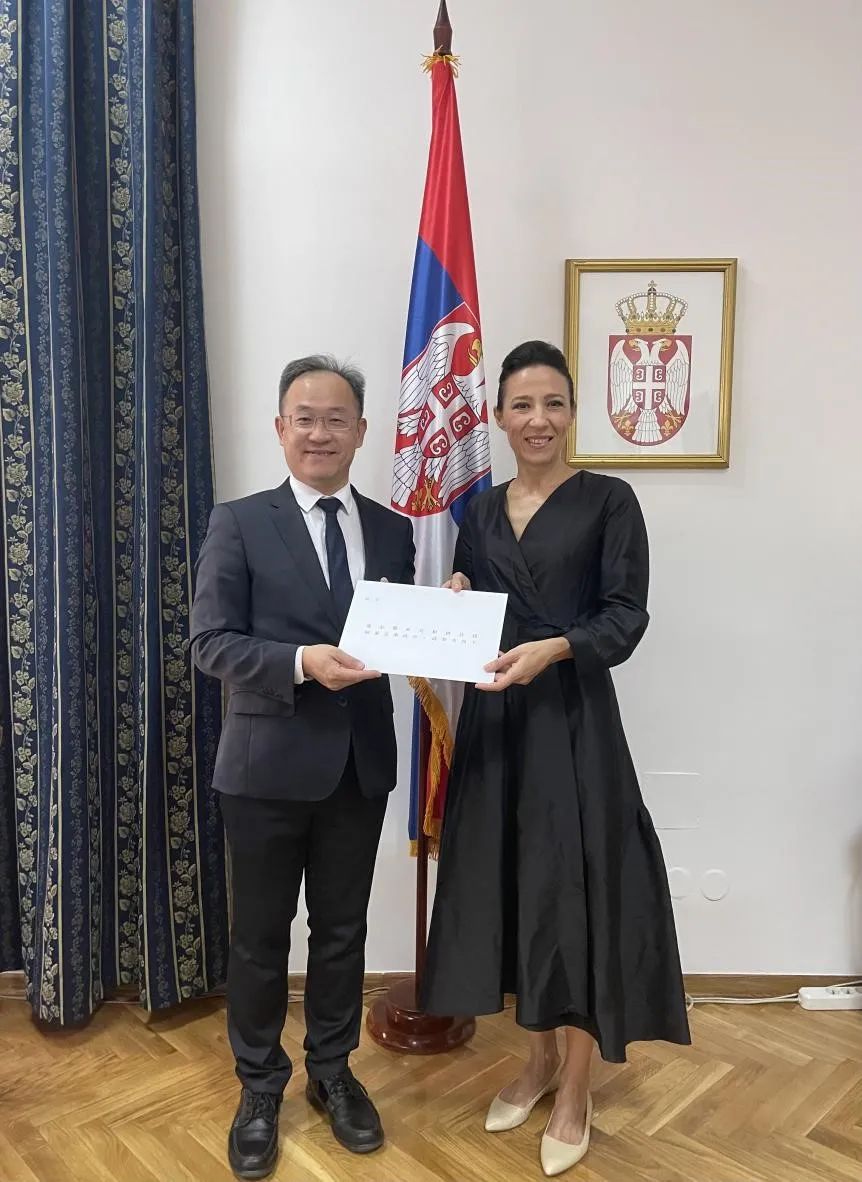 9月30日,新任中国驻塞尔维亚大使李明向塞外交部礼宾司司长耶雷米奇递交国书副本。