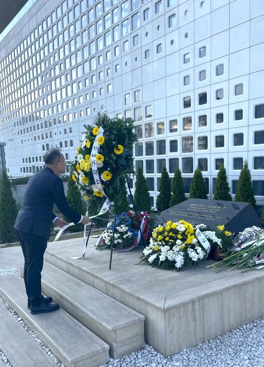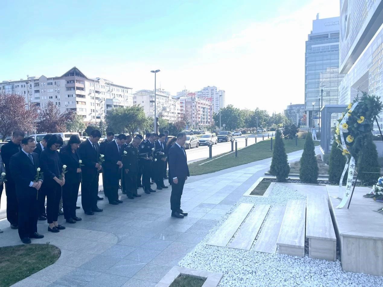仪式开始,李明缓步行至烈士纪念碑前,仔细整理花圈缎带并敬献花束。随后,全场肃立,向为中国外交事业英勇献身的烈士默哀。李明表示,中国驻塞尔维亚使馆在“烈士纪念日”之际缅怀英烈具有特殊意义。驻塞使馆是经历过战火考验、有着光荣传统的战斗队伍,要传承英烈精神、汲取奋进力量,为中塞两国“钢铁”友谊添砖加瓦,更好造福两国人民,以实干担当不断开创中国特色大国外交新局面。