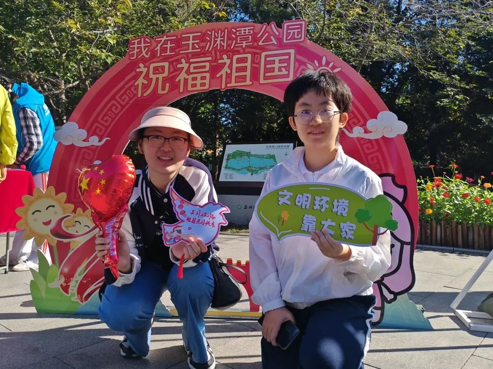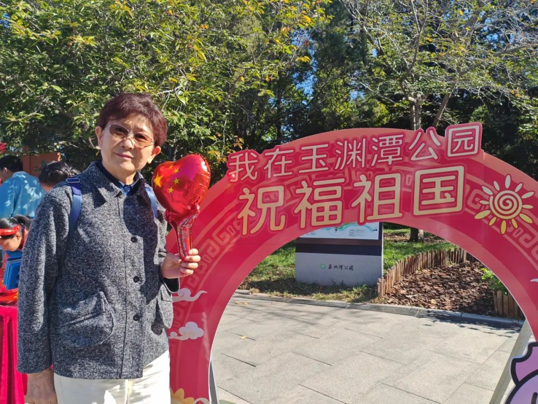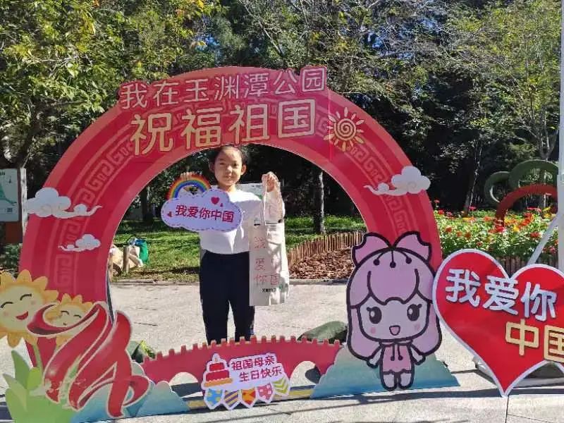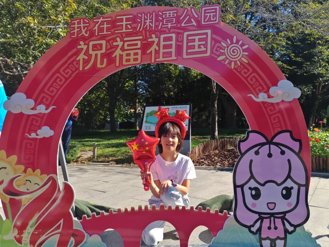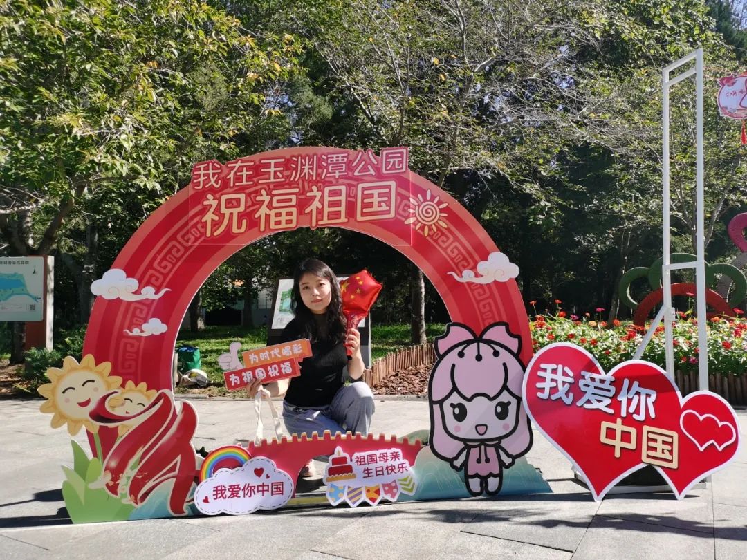 公园定制款“玉渊潭小樱”国庆节主题相框吸引了大家打卡拍照,合影留念告白祖国。