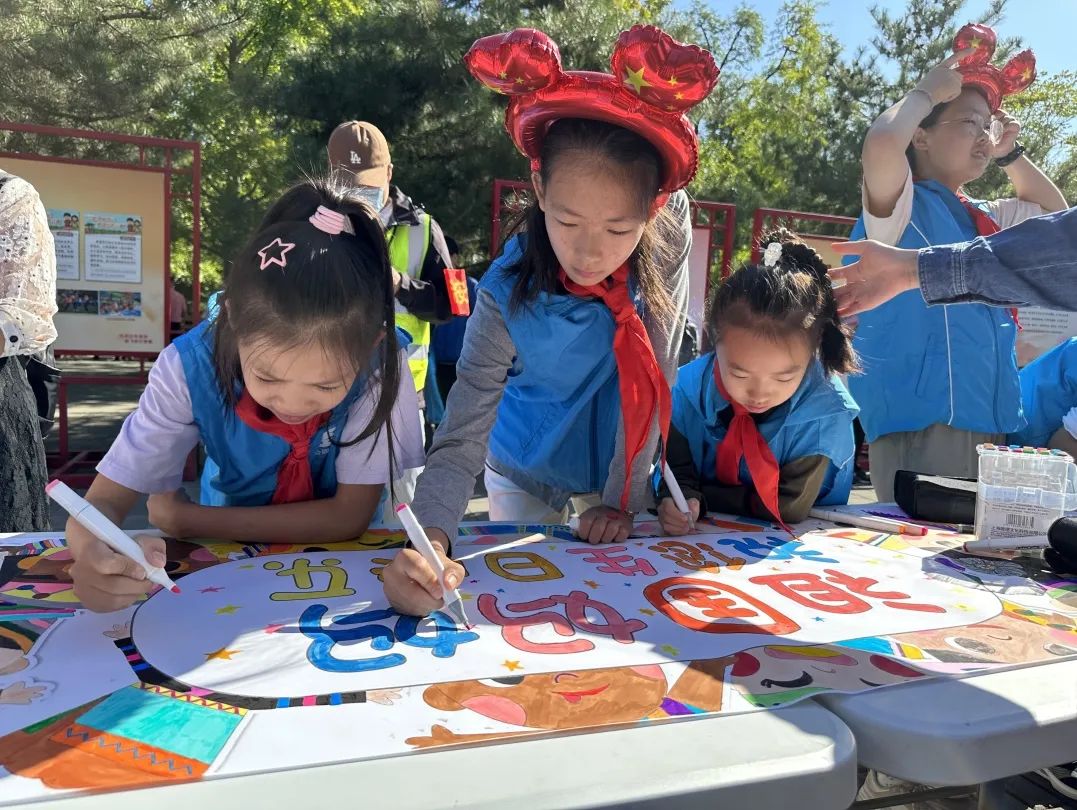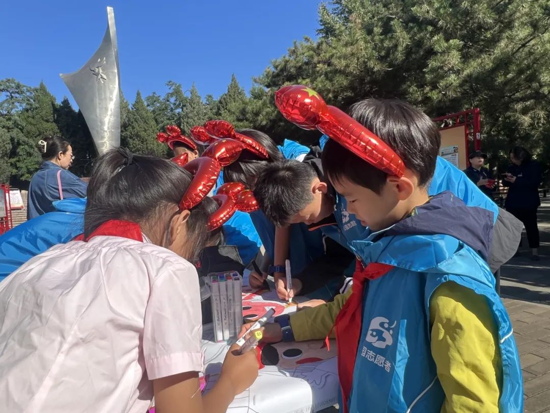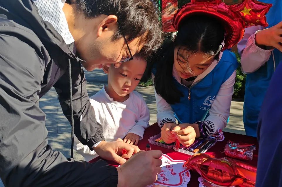 国庆节,公园充分发挥爱国主义教育基地、红色展览等资源优势,在北京市爱国主义教育基地——中国少年英雄纪念碑广场开展了“童心绘梦 礼赞祖国”红色主题活动,现场游客及小朋友们通过“观展传承文化”“绘画祝福祖国”“重温入队誓词”等内容,共同在中国少年英雄纪念碑广场体验国庆假期里的“红色之旅”。