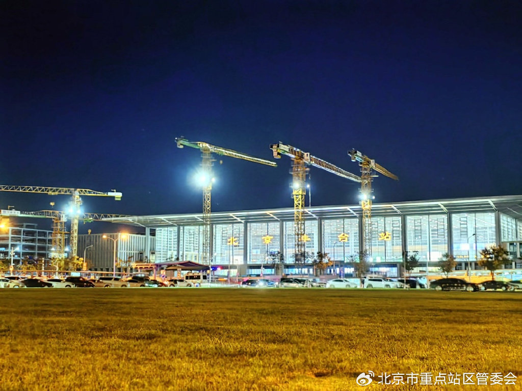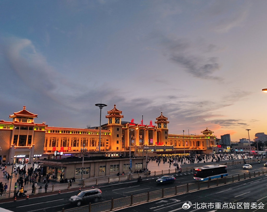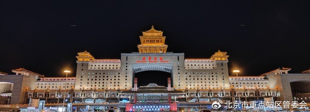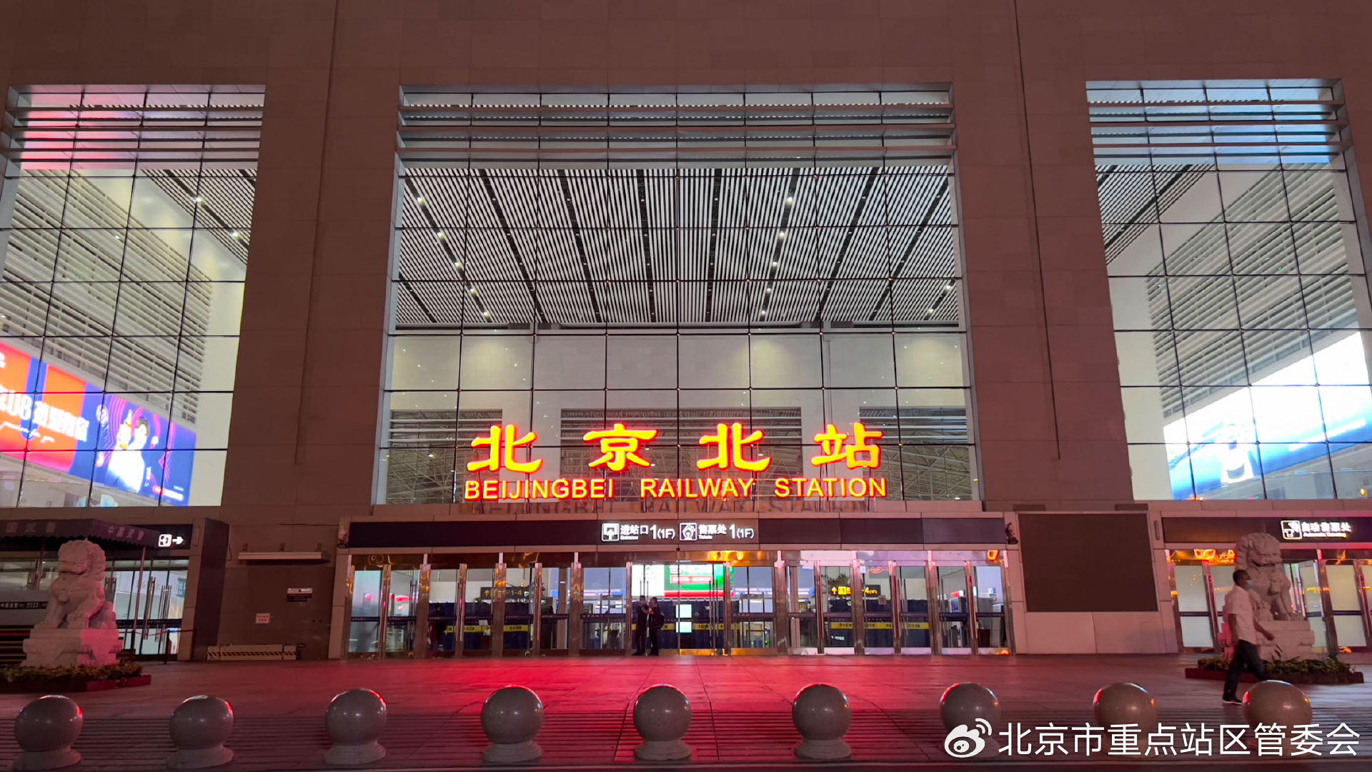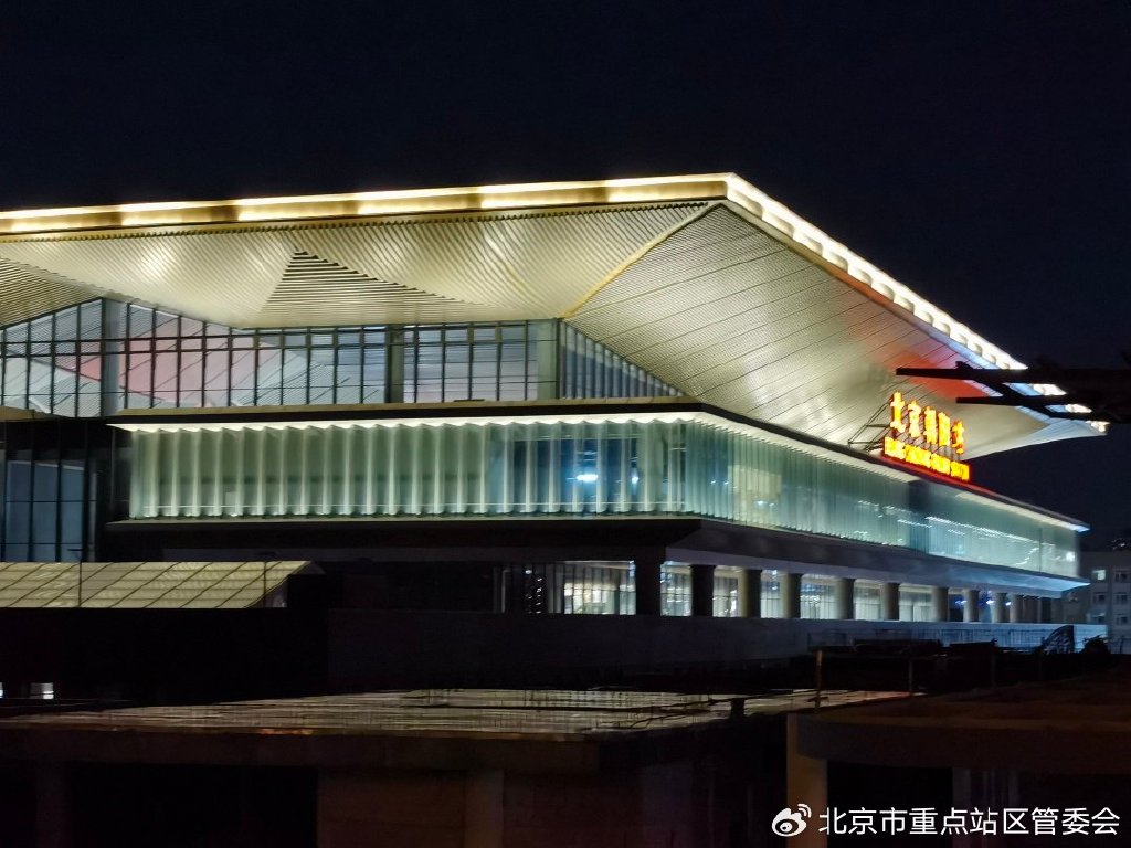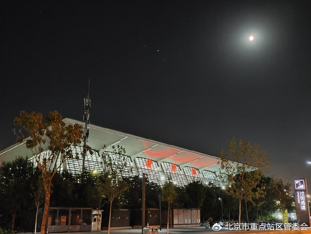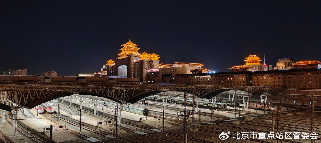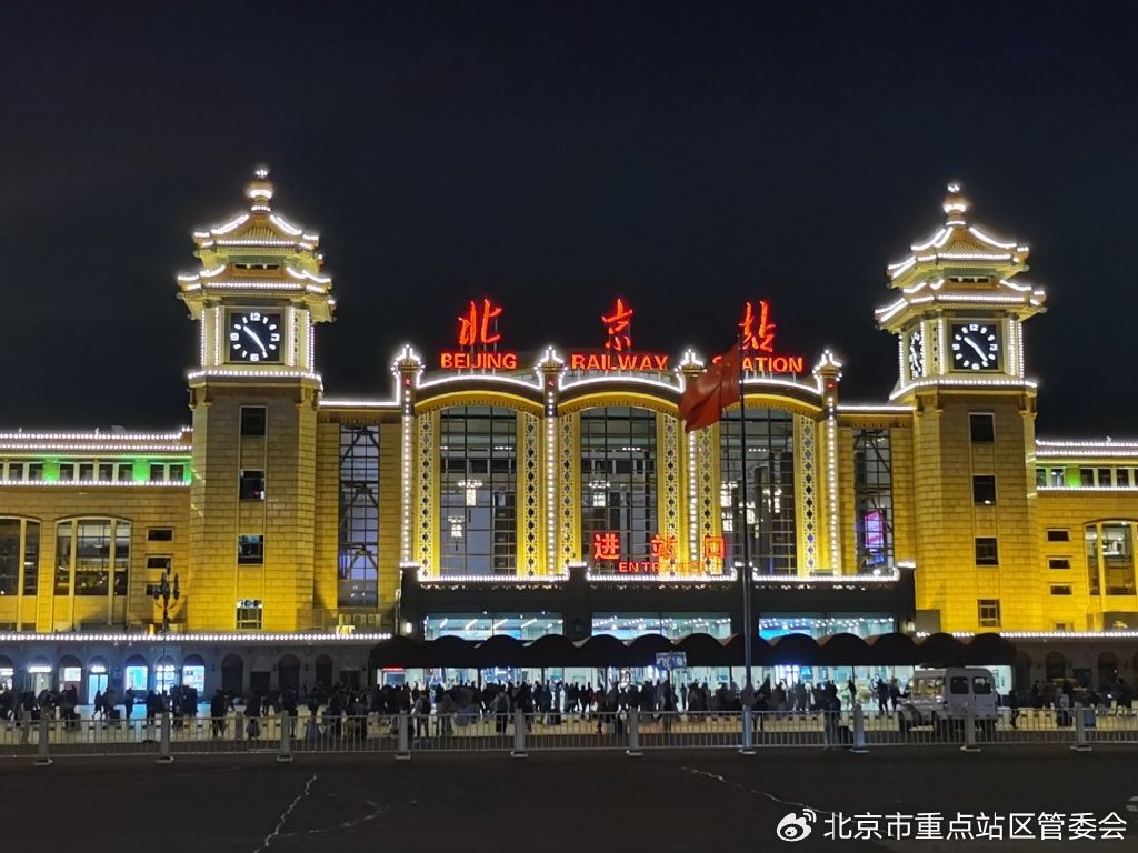 节日期间的北京北站明光烁亮,喜迎八方来客