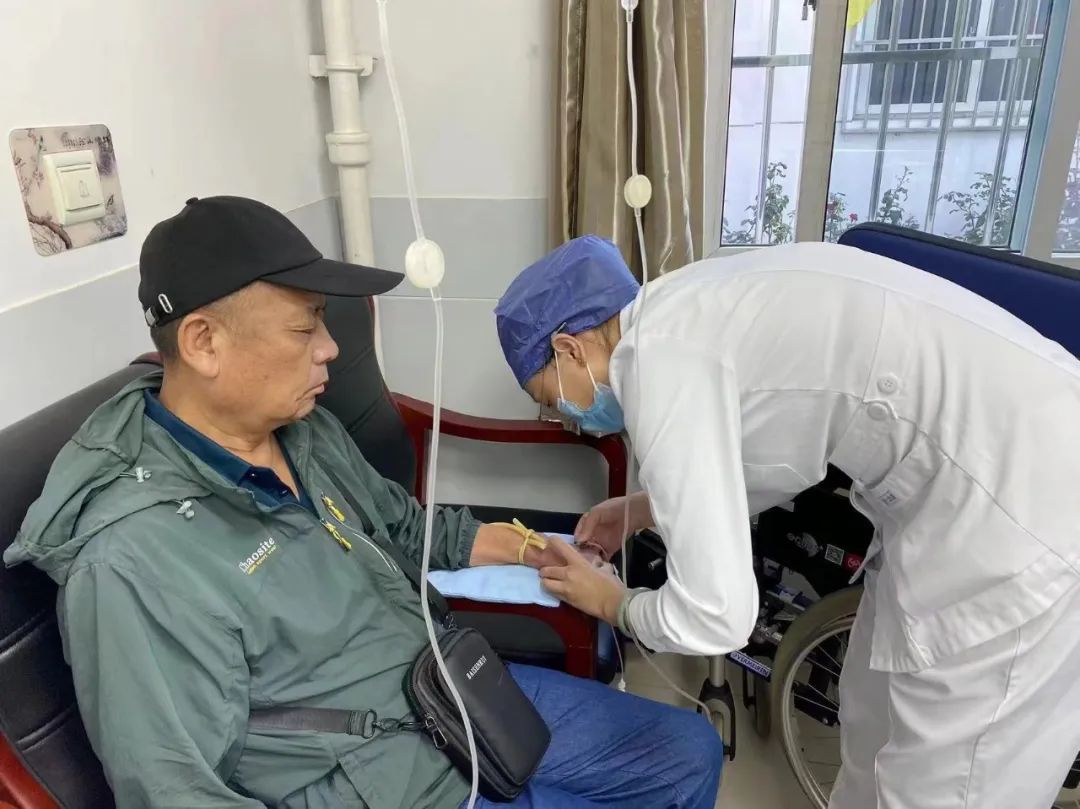 苹果园街道东下庄社区的家医签约居民李俊老爷爷已90岁高龄,因为腿疼,他平日在东下庄社区卫生服务站进行日常中医针灸治疗,中秋佳节,家人团圆相聚,满心欢喜,老人不愿意去医院接受治疗,怕影响儿女相聚心情。经过家人的联系,东下庄社区卫生服务站的中医闫旭玲了解到这种情况,针灸治疗中途中断确实会影响治疗效果,为了不耽误病情治疗,满足老人愿望,她和孟丽霞护士拿上诊疗箱,上门为老人提供医疗服务,进行中医针灸治疗,使老人足不出户解决治疗和保健需求,用医疗服务下沉,确保居民群众在假期间健康有所保障。