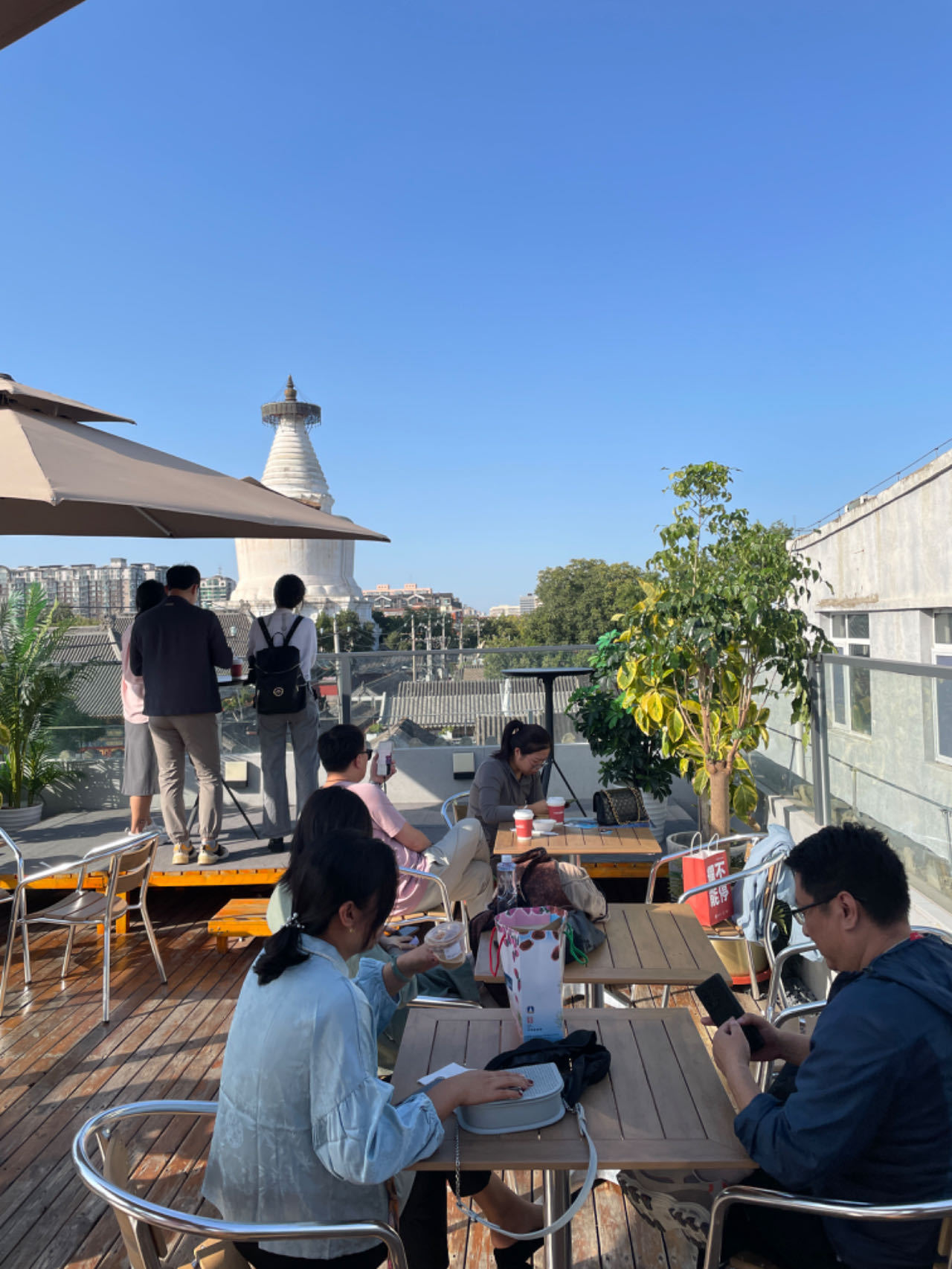 在耀咖啡露台的消费者欣赏白塔寺美景
