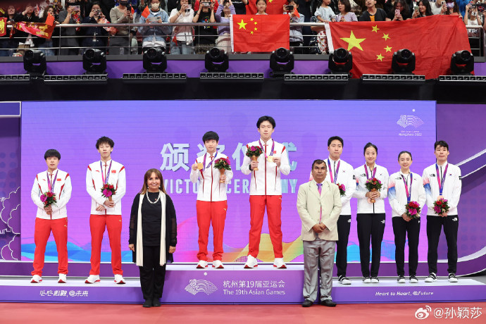 最后想要感谢这次杭州亚运会台前幕后的所有人,还有国乒所有人的帮助和支持!我们下个赛场见。希望大家可以继续支持中国乒乓球队!