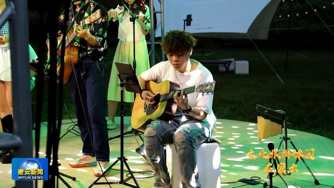 除了享受优美的自然风光和美妙的音乐,活动现场还设有农产品市集、美食体验区,向游客展示推广软枣猕猴桃、桔梗、蜂蜜、北京油鸡、黑玉米、橄榄瓜等十余种镇内特色农产品。露营亲子区设置了露营桌椅以及亲子家庭互动项目,让游客尽享美好时光。
