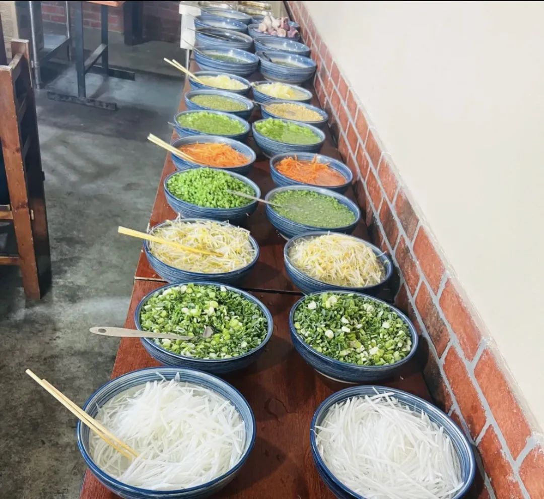 这家因手擀面而出名的农家馆子,凭借着味美、价实、菜量大、服务好收获了不少回头客。跟手臂差不多长的肉龙、软糯香烂的猪蹄、劲道爽滑的荞麦碗托等都是他家的招牌菜。需要提醒的是,节假日饭点提前来,才能“抢”到位置。