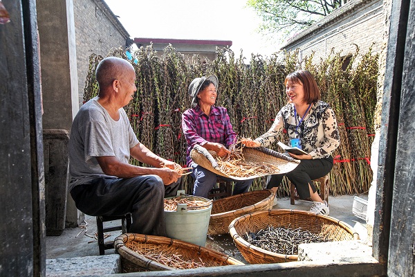 河南省博爱县纪委监委紧盯乡村振兴领域惠农富农政策落实、项目管理、资金使用等重点,组织纪检监察干部深入基层一线,强化日常监督。图为该县纪委监委干部在下岭后村向村民了解情况。(河南省博爱县纪委监委供 王萌萌 摄)