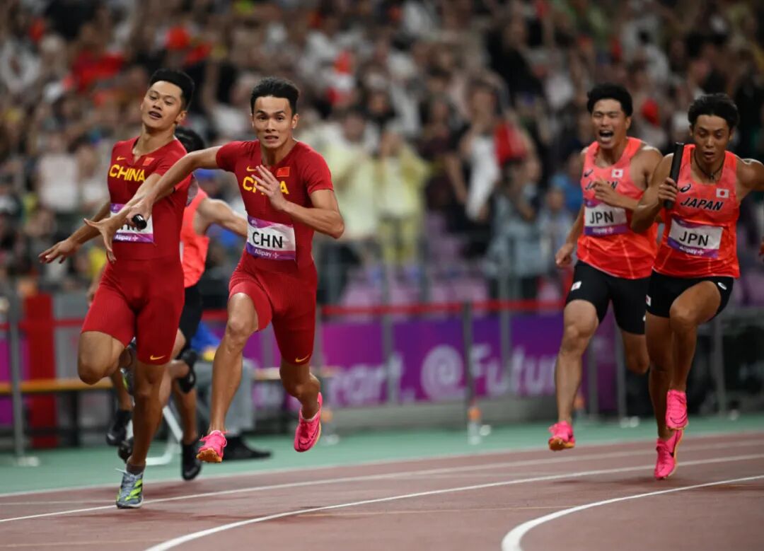 10月3日,杭州奥体中心体育场再次爆满,大家等待着本届亚运会田径项目的重头戏——男、女4×100米接力决赛。