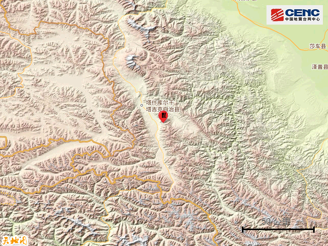 据中国地震台网正式测定,10月5日23时29分在新疆喀什地区塔什库尔干县发生3.1级地震,震源深度92公里,震中位于北纬37.58度,东经75.46度。