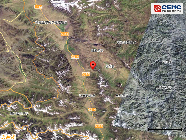 震中地形:震中5公里范围内平均海拔约4126米。