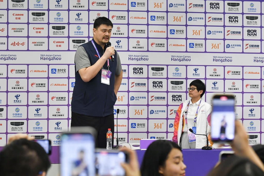 半决赛输给菲律宾队后,姚明现身发布会向媒体致歉。图片来源:视觉中国