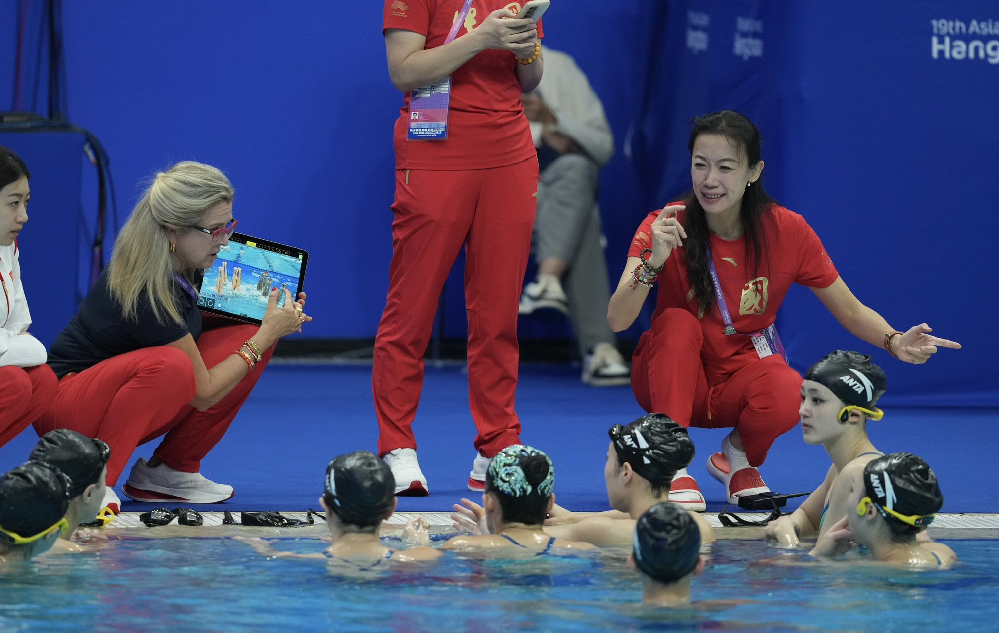 10月8日上午结束的杭州亚运会花样游泳比赛中,中国队凭借自由自选成套动作《万有引力》的出色发挥,在综合技巧自选和技术自选的得分后,最终以868.9676分夺得集体项目的冠军。
