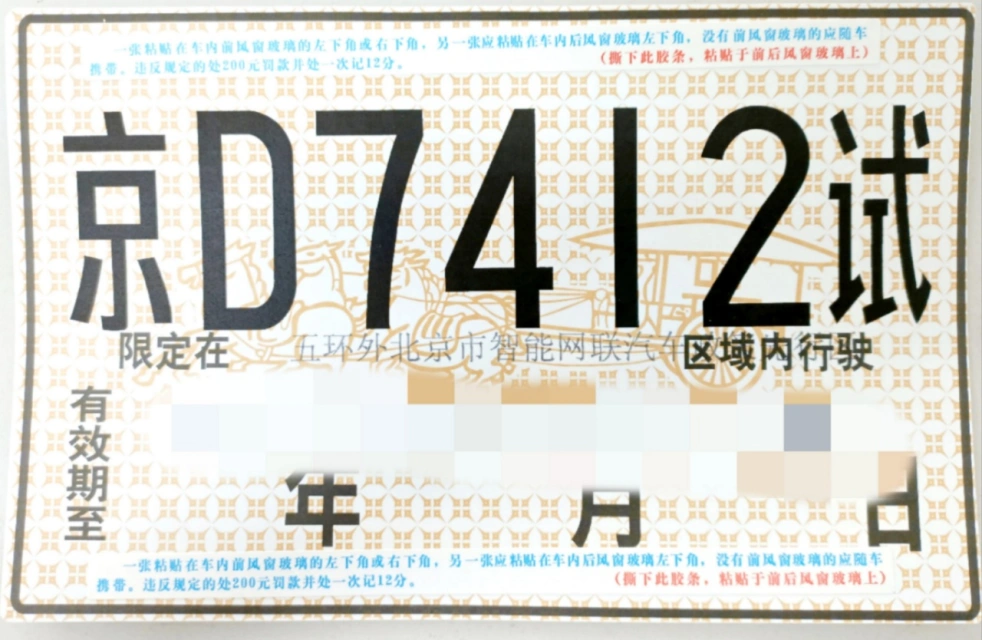 大型普通客车自动驾驶路测牌照