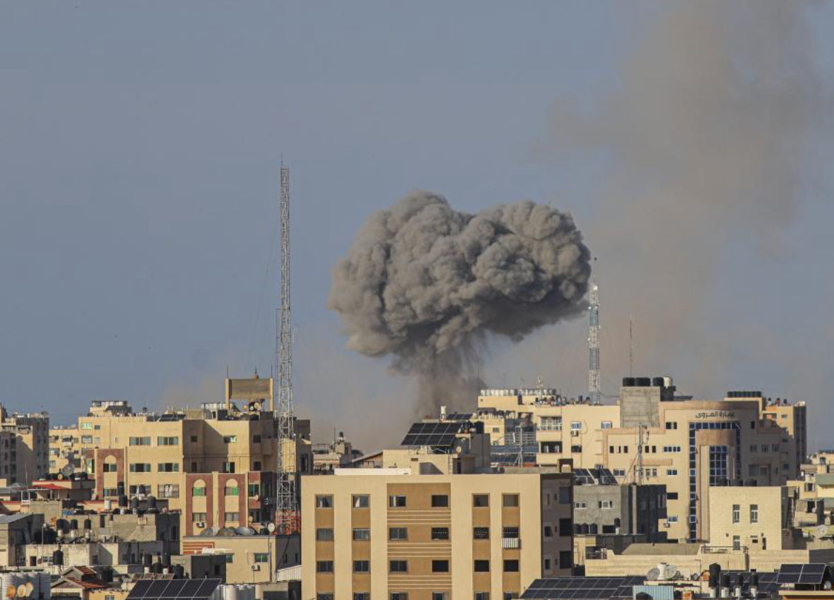 10月7日,以军空袭加沙。 新华社发