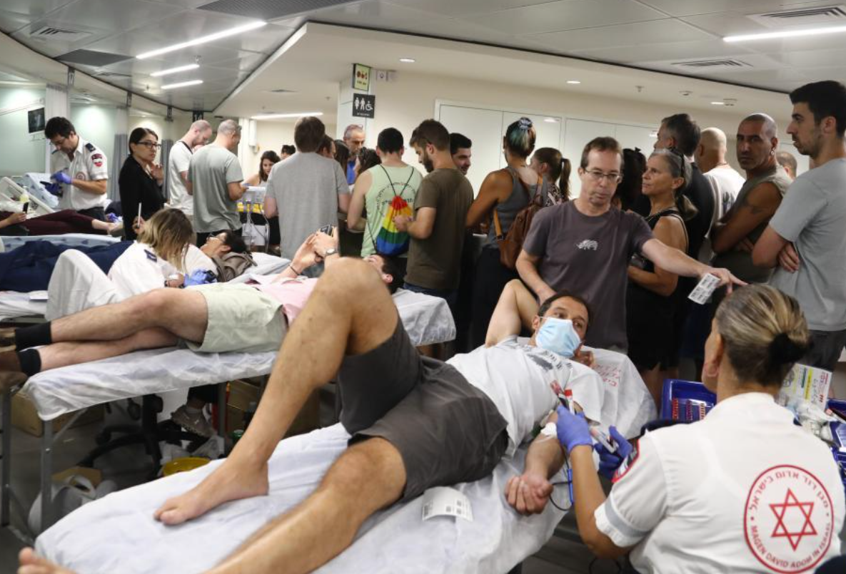 10月7日,以色列民众在特拉维夫一家医院献血。 新华社发